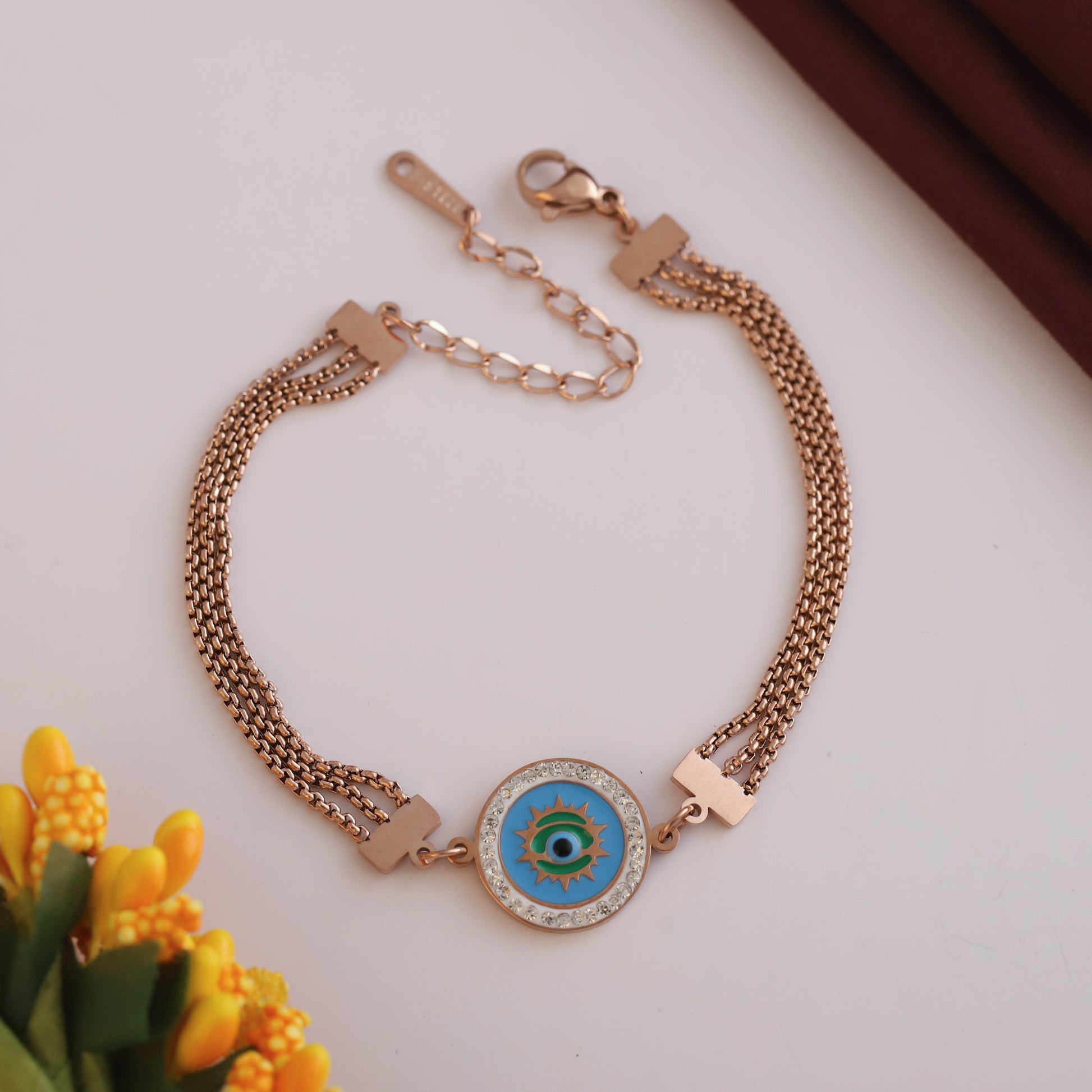 Evil Eye Chain Bracelet Gold Plated – Multi Layer, Anti-Tarnish, Waterproof (ROSE GOLD)