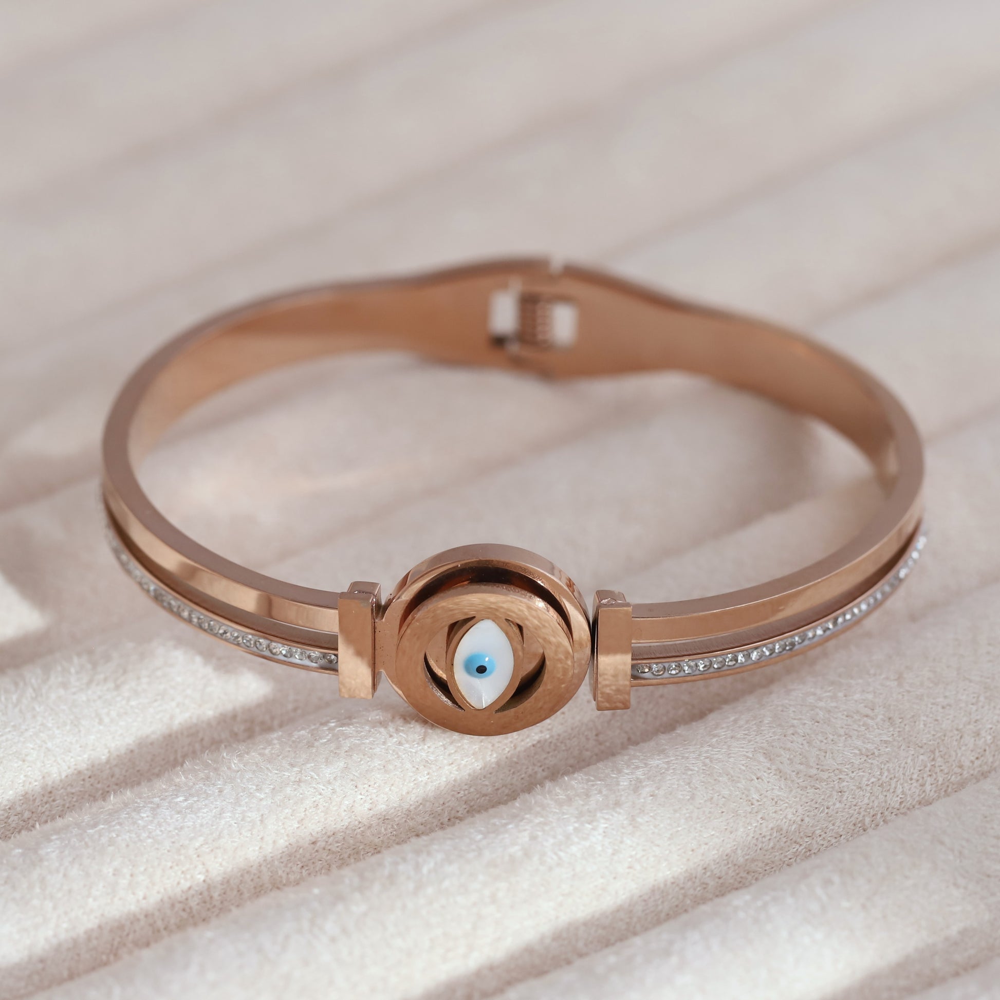 Evil Eye Gold-Plated Cuff Stainless Steel Bracelet – Anti-Tarnish Jewelry for Women & Girls (ROSE GOLD)
