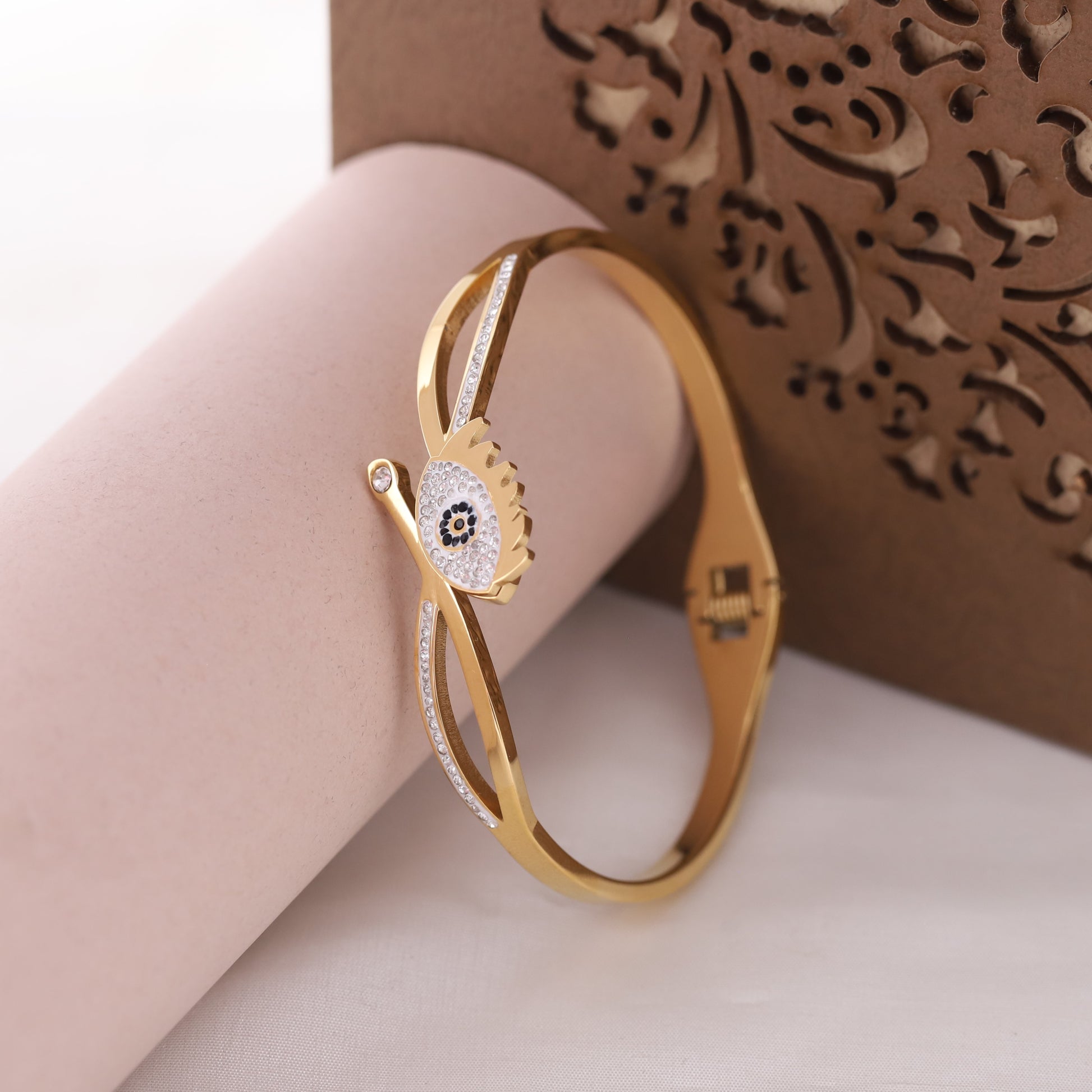 Evil Eye Gold-Plated Stainless Steel Cuff Bracelet – Anti-Tarnish Jewelry for Women & Girls (GOLD)