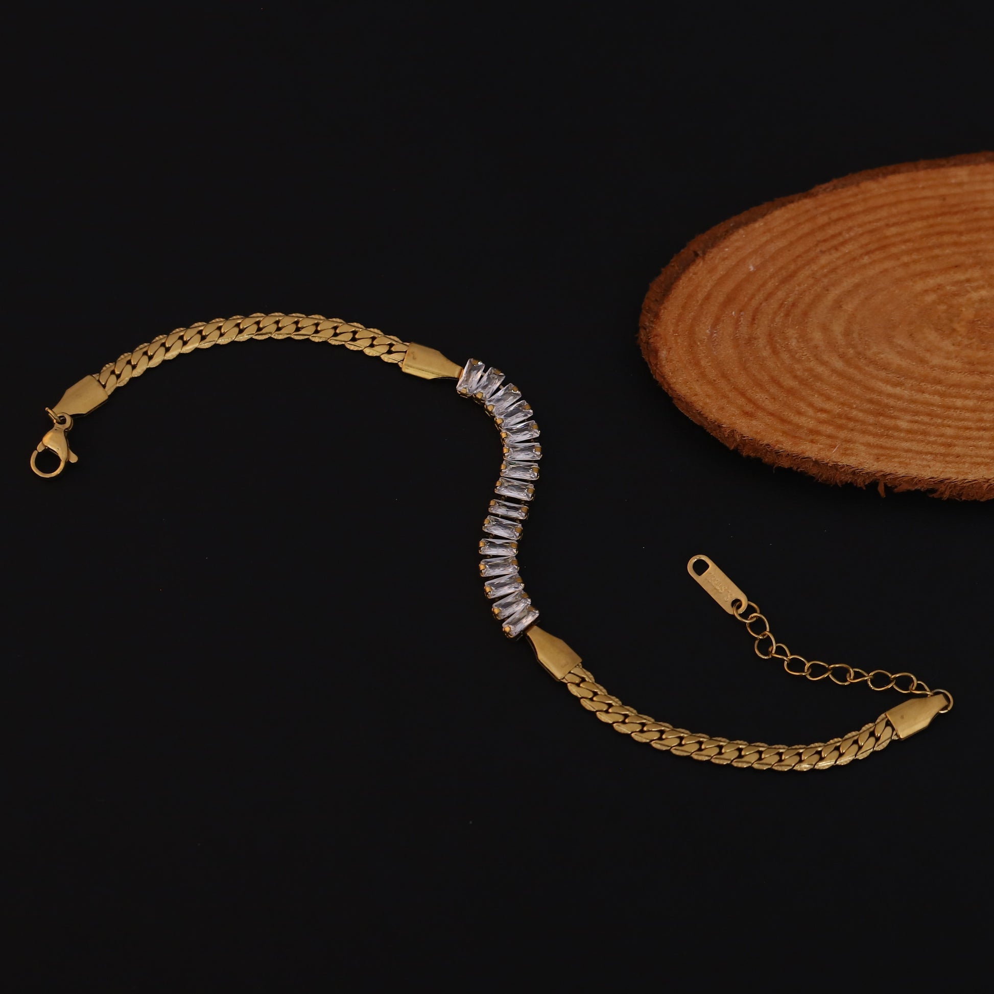 White Stones Chain Bracelet Gold Plated – Single Layer, Anti-Tarnish, Waterproof, Minimalist Style (GOLD)